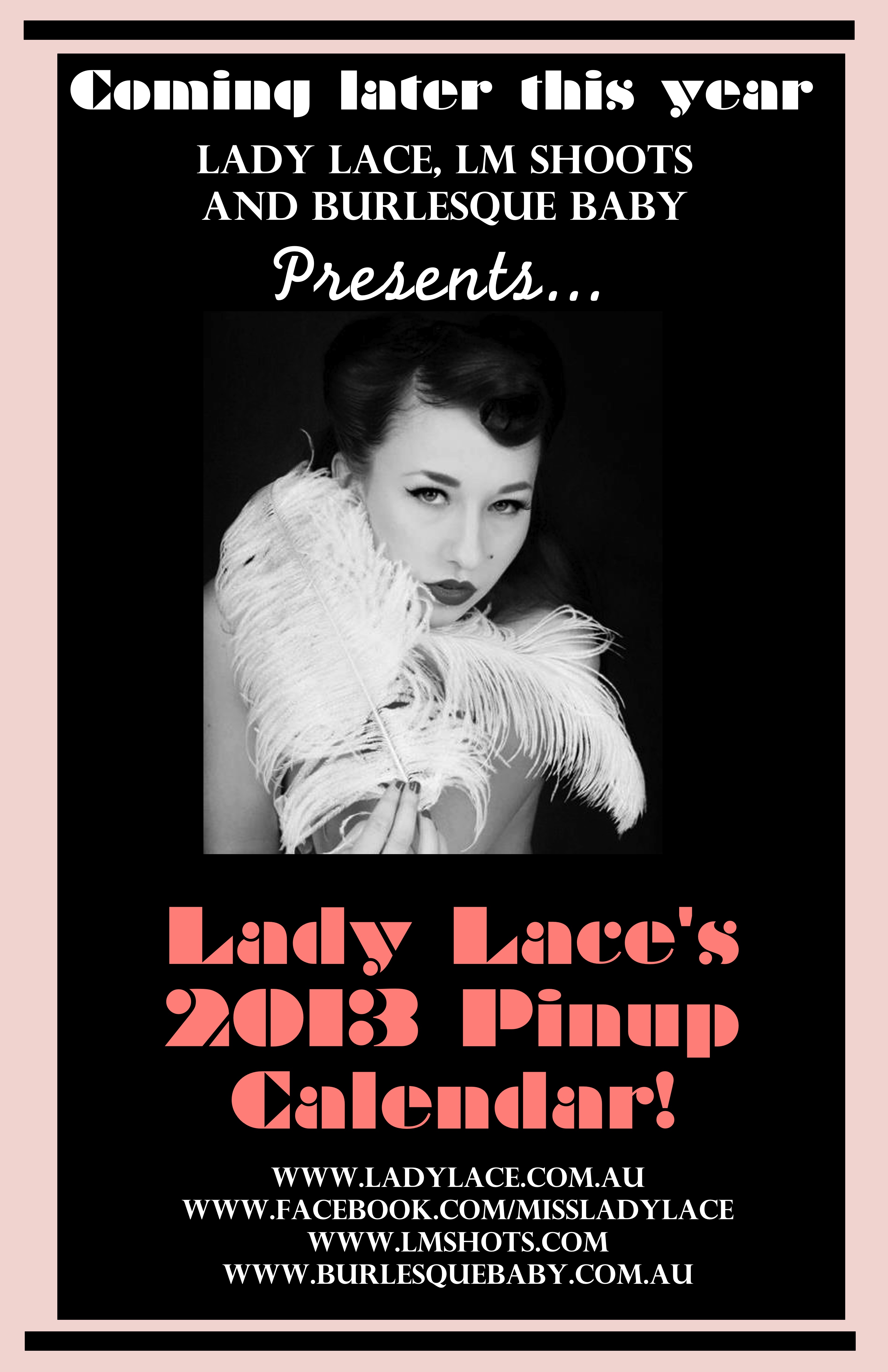 A vintage styled calendar for 2013 featuring yours truly!!!!!!! It will feature 12 months on old school glamour printed and signed! The date of this release has not been finalised yet, but we’re working on a release date as well as pre-orders available very soon!
