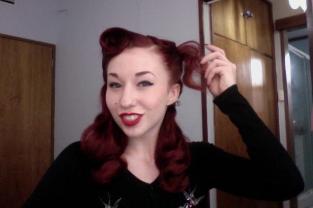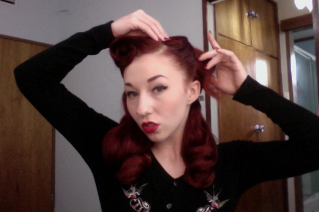Today I’m posting this blog about one the most popular requests for vintage styling tutorials that I receive, how to do a victory roll! I first discovered victory rolls when I was about 14 years old, before I’d made the discovery of what pinup actually was, I was experiment with hair curlers, and thought to myself “gee, wouldn’t it be cool if you could style your hair like this, but not have the curler there?”, I also didn’t know YouTube was a fantastic source for different tutorials so I just continued to experiment till I developed my own unique way of styling victory rolls. Almost 7 years later I’ve become quite a victory roll veteran, and love experimenting with new ways of styling with this basic method.