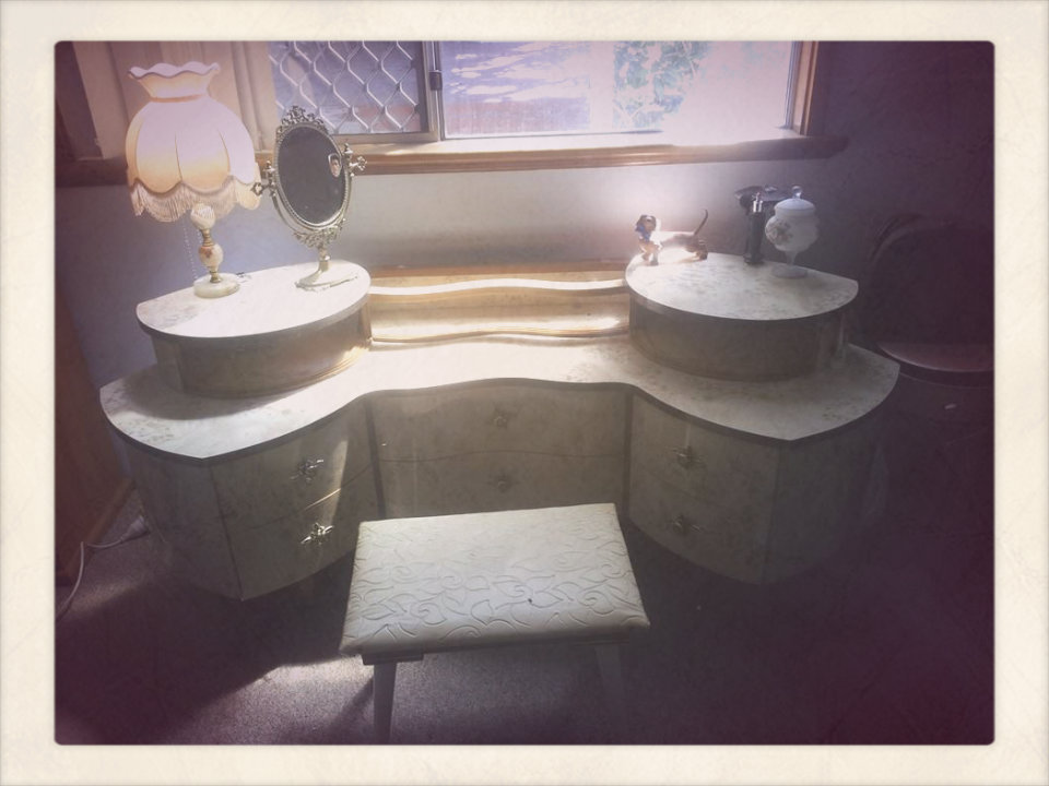 I thought I’d also share my prized vintage dresser, which I was lucky to buy second hand for only $20, and later found the match boudoir char from only $10 at an op shop. She isn’t quite as opulent as some of the above photos, but she does the trick!