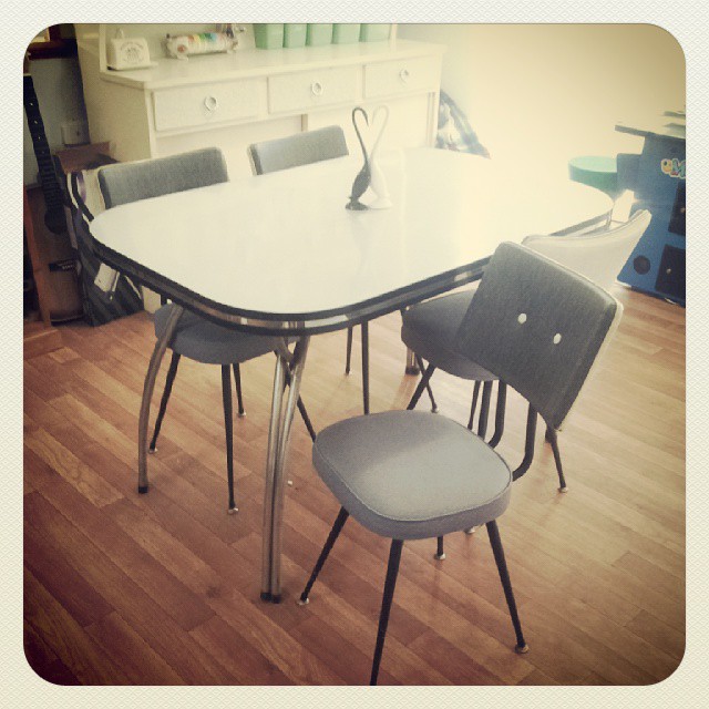 A vintage-dining suite adds the perfect touch to your dining kitchen area. The best place to find these is vintage stores, and gumtree.com.au. This set was bought as engagement present from my lovely parents.
