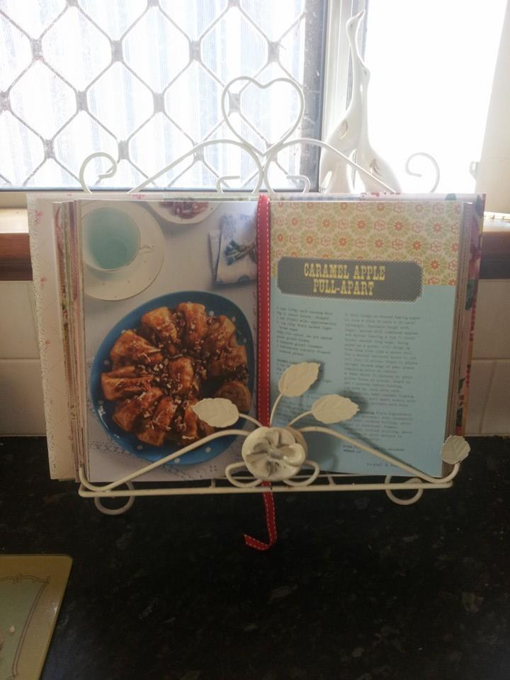 This is a cute accessory, that I have found really useful, it has prevented many of my recipe books from being damaged. I bought this from The Reject Store for $5, but they can also be found at kitchen stores, second hand stores and gumtree.com.au.