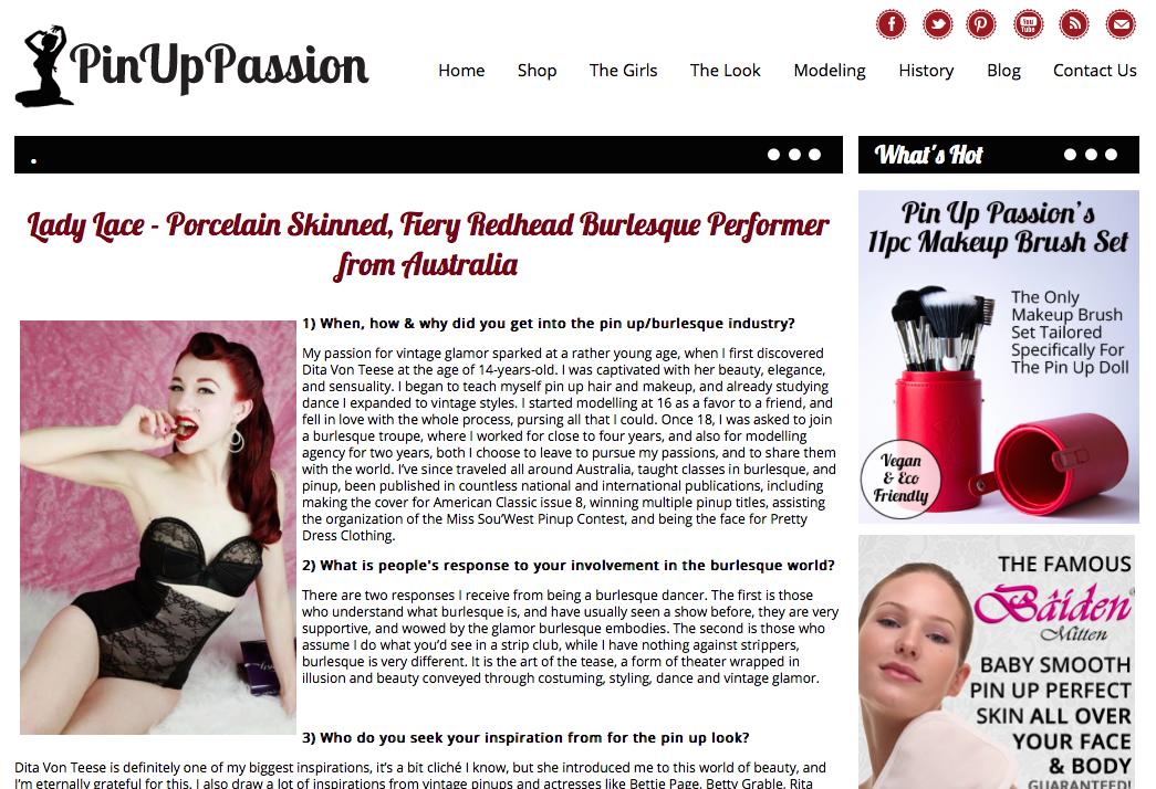 You can also read my article my visiting the Pin Up Passion website, selecting “The Girls”, then scrolling down to see me!
