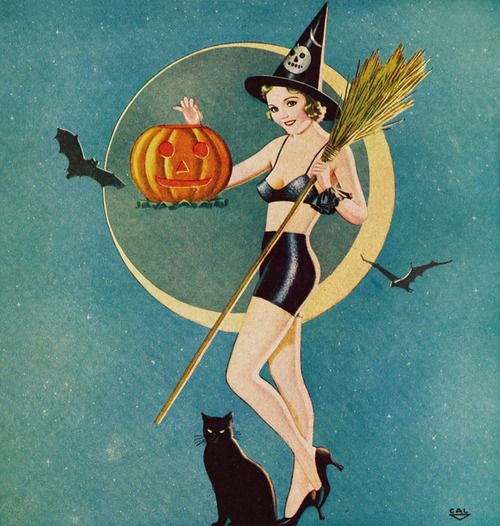 A very popular pinup subject matter when it comes to vintage pinup photography and art, and so easy, grab a cute black vintage dress, and buy or make a witch, and along a broom.