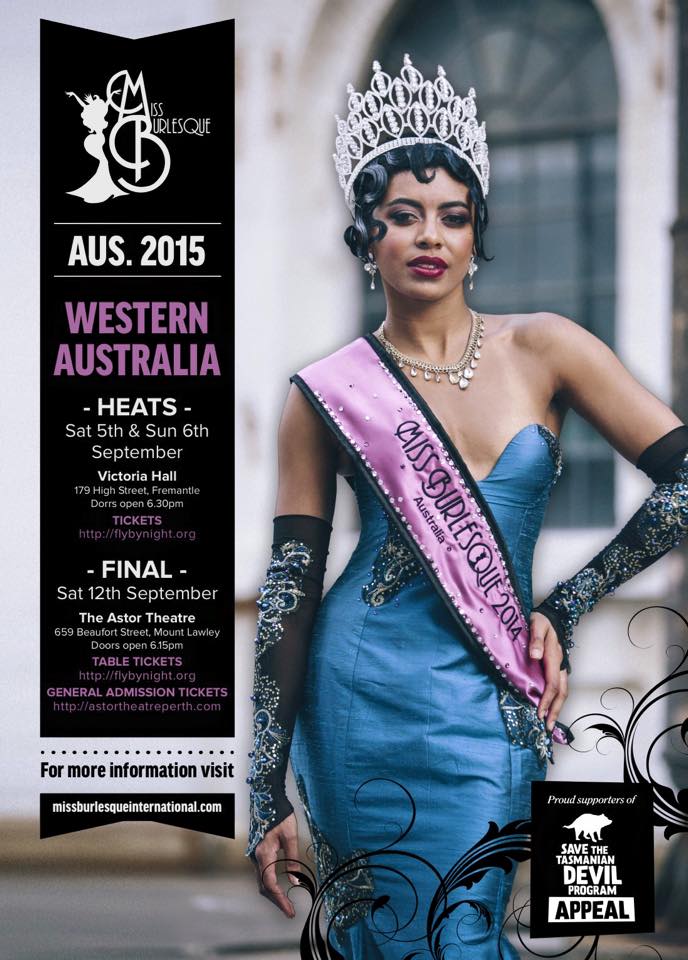 Miss Burlesque as a contest was foundered in 2009, and the first contest was held in July of 2015. Cassandra Jane, is the creator of this contest, but now individual states have their own producers, in Western Australia we’re lucky to Melanie from Sugar Blue Burlesque as our producer.
