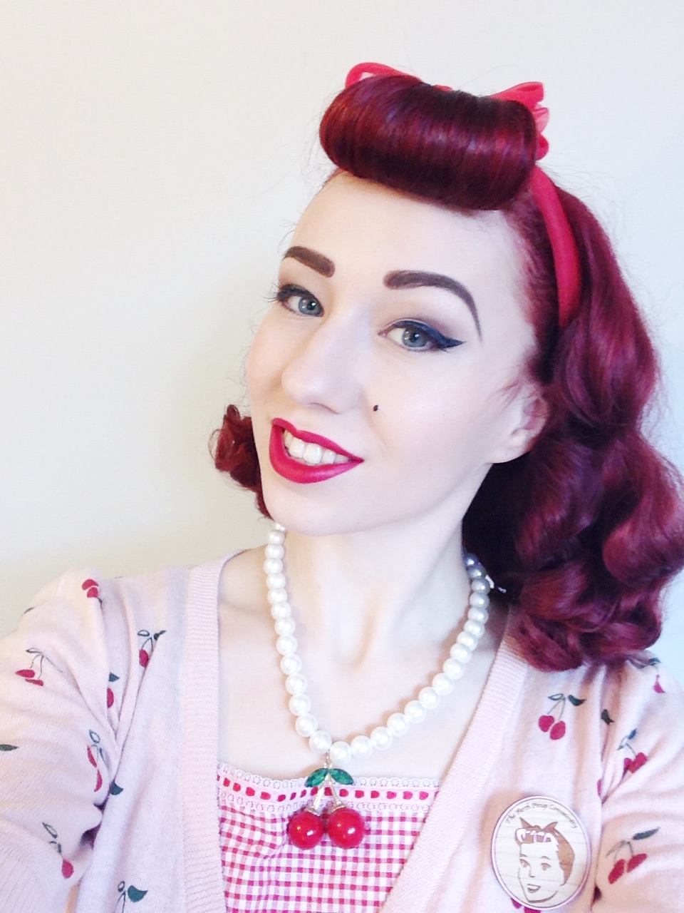 Brooch: The Perth Pinup Community brooch custom made by Deer Arrow.