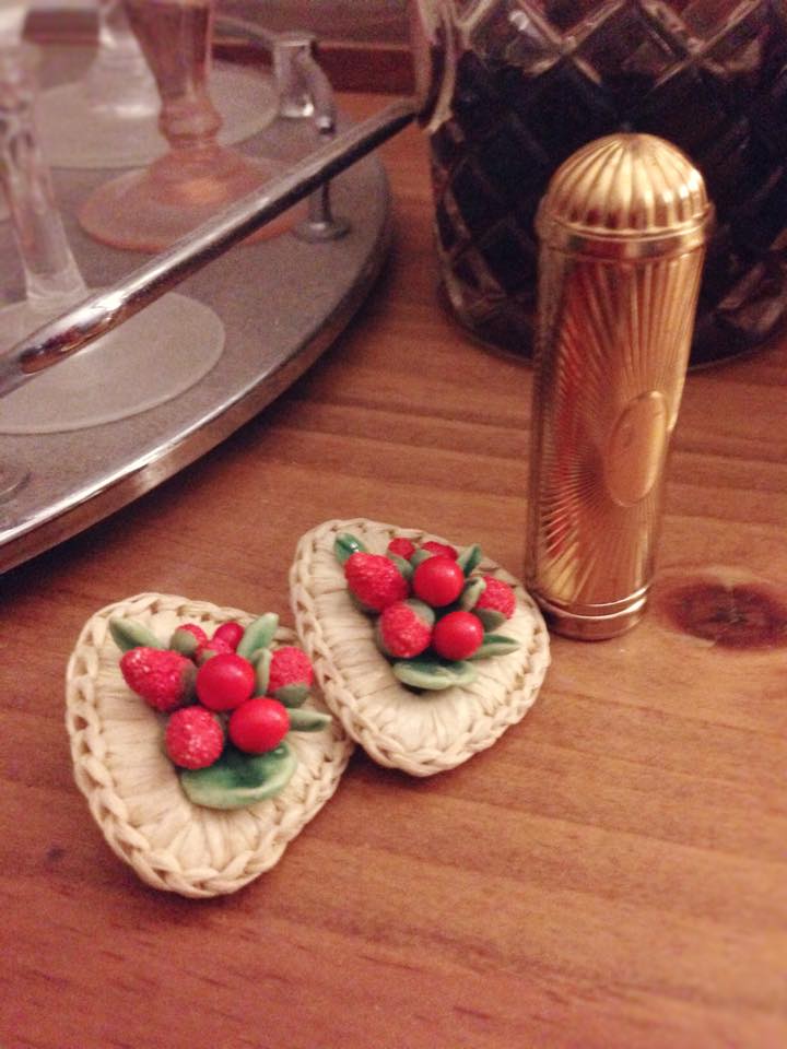 From the Polka Dot side I bought a beautiful vintage lipstick holder, and in the antique section I bought a wonderful pair of vintage earrings from Sophistihat which feature glass beads that form a little fruit bowl which were too fabulous to pass up!