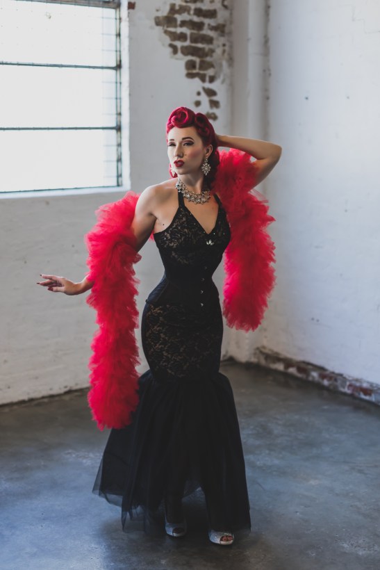 She began dancing to the beat of a different drum when she was merely 14-years-old, donning red lipstick and nylons, she had already found her calling in life but was not yet aware of it. She taught herself vintage styling and loved nothing more than playing with extravagant costumes. By 16 she performed in her first burlesque show in a showgirl chorus line, she had a taste for the stage that would only grow. By 18 she had joined a modelling agency and dance company beginning her professional endeavours, eventually leaving both of these to work for herself and chase her wildest dreams. She’s since been on the cover of magazines, won mutable local, national and international pinup contests, and performed all across Australia, New Zealand and America.